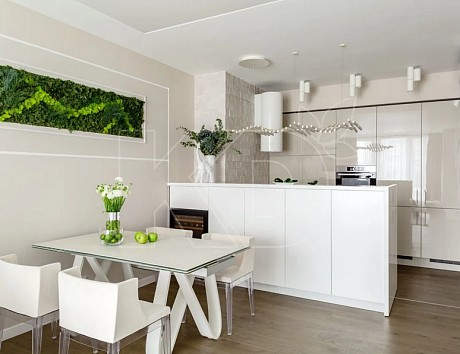 Белая глянцевая кухня в интерьере