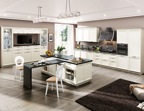 Белоснежный кухонный гарнитур смотрится стильно и необычно. Он поднимает настроение, зрительно расширяет помещение и освежает его. Такое решение подходит хозяевам, которые предпочитают светлые оттенки, но не хотят, чтобы кухня казалось скучной и стерильной. В этом случае сочные детали сделают свое дело.