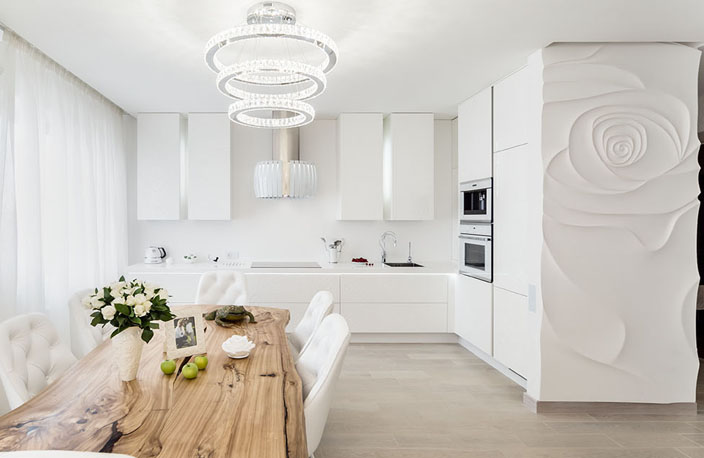 Оформлении интерьера белой кухни в современном стиле