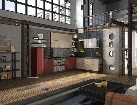 Большие кухни в стиле лофт