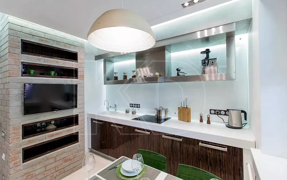 После установки кухни и плитки необходимо убедиться в правильной работе новых кухонных приборов. Важно расположить светильники на разных уровнях и установить пеналы и шкафы внутри новой кухни.