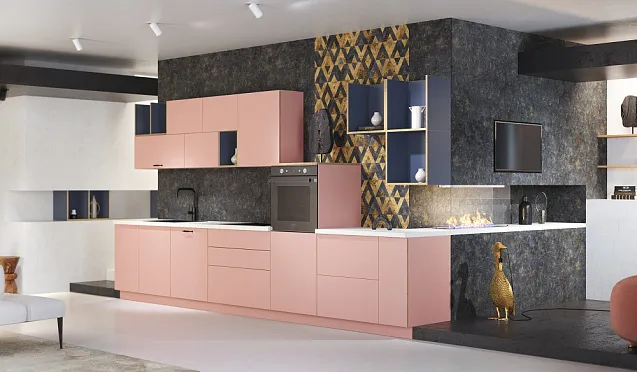 новинки сезона, оформленные с однотонным покрытием мебельного фасада;
