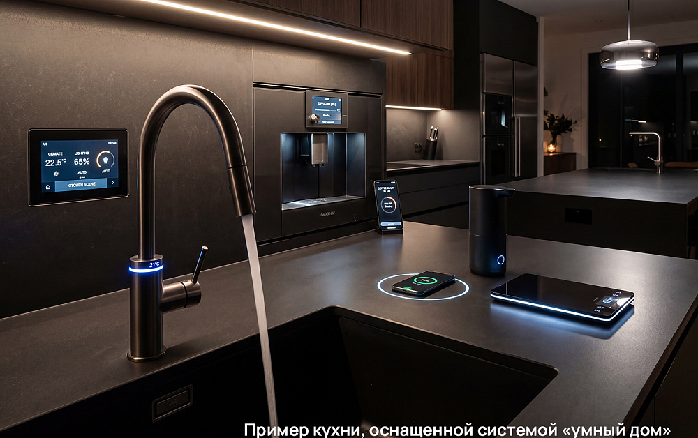Интеграция сенсорных смесителей, подсветки с датчиками движения и систем «умный дом» превращает кухню в пространство, где техника словно предугадывает ваши шаги. Быт становится проще, ресурсы расходуются экономно, а каждое привычное действие — быстрее и удобнее. Такая система делает современный кухонный интерьер не только стильным, но и умным, комфортным и готовым подстраиваться под ваши привычки.