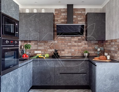 4. Серый. Для разбавления других оттенков на кухне 12м2 в классическом стиле часто используется серая гамма. Она удачно сочетается с голубым, песочным, белым.