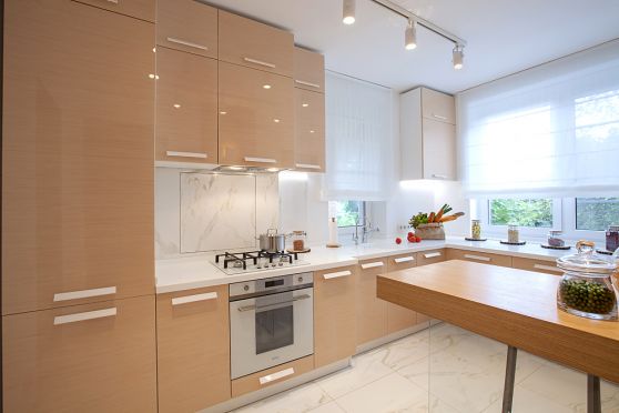 Купить кухню в Твери можно в самых смелых и разнообразных решениях. Однотонная мебель нейтральных оттенков смотрится аккуратно. В нынешнем году актуальными считаются такие миксы: