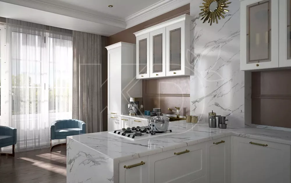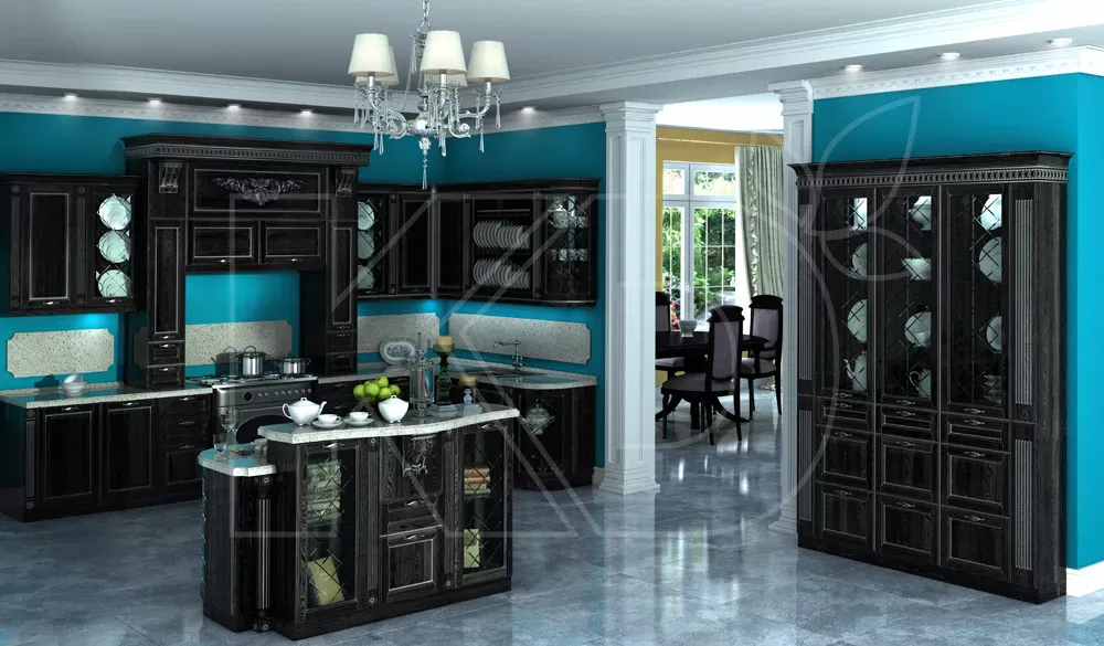 Классическая кухня отличается элегантностью, изяществом и роскошью. Подобные решения подходят для просторных помещений с высокими потолками и большими окнами. В небольших комнатах кухонная мебель в стиле классика будет смотреться несколько нелепо и вычурно из-за того, что для ее оформления используется роскошный декор – позолоченные элементы, лепнина, резьба, патина, изогнутые ручки.