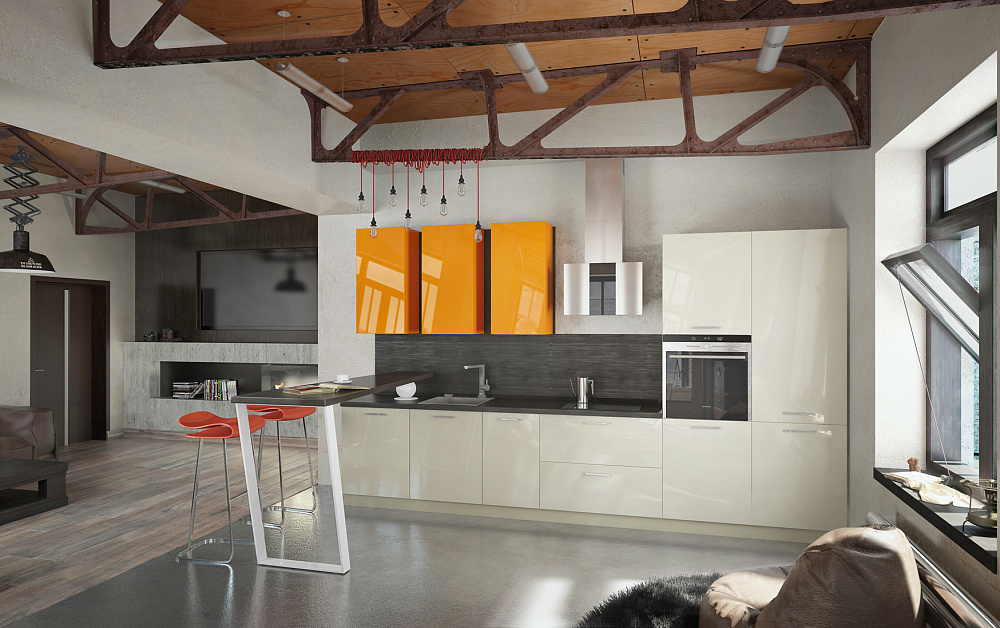 1. Важно, чтобы кухонный гарнитур был выполнен в актуальной стилистике, например, направлениях хай-тек, лофт или сканди.