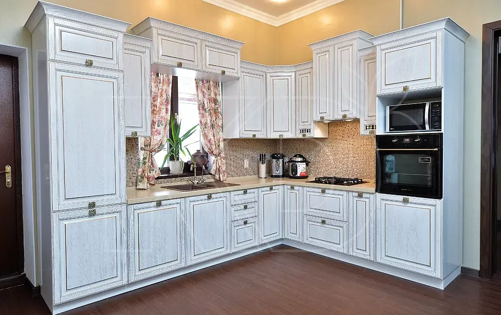 Компания «Кухонный двор» производит гарнитуры из натуральной древесины и качественного МДФ. У нас можно заказать кухню с фасадами любой расцветки. Наша продукция обладает следующими преимуществами: