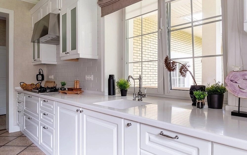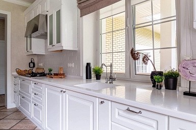 Дизайн кухни в стиле классика привлекает внимание своей роскошью. Для отделки фасадов применяются резные узоры, лепнина, позолота, патина, рамки.
