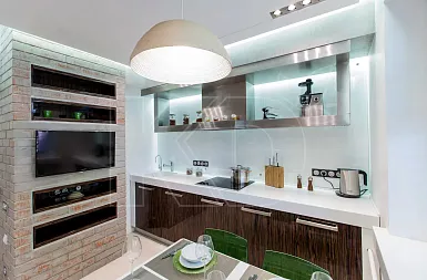 После чистовых работ можно переходить к монтажу и установке кухонного гарнитура. Желательно, чтобы сборкой и интеграцией мебели занимались специалисты. Они быстро соберут кухню, встроят ее в нужное место, установят плиту, мойку и столешницу. Подключение электрооборудования тоже рекомендуется доверить профессионалам.