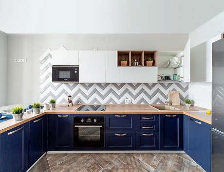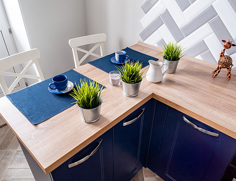 Отдельно стоит отметить то, что всем желающим сбросить вес диетологи рекомендуют активно включать синий в кухонное пространство. Считается, что этот цвет снижает аппетит, обеспечивает более быстрое чувство насыщения и удовлетворенности от еды.