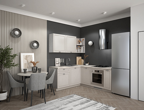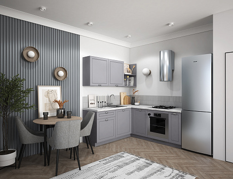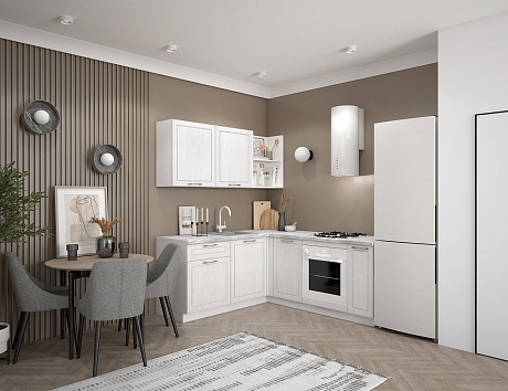Кто сказал, что классика не готова адаптироваться под стандарты скандинавского минимализма? Доказываем, что готова! Лея гармонично сочетание в себе мотивы прошлого и тренды настоящего. Мягкая цветовая палитра и аккуратные детали создают атмосферу уюта и гармонии. Лаконичные фасады с изящной фрезеровкой и открытые полки придают интерьеру нотку той самой утончённости, а продуманная Г-образная архитектура даёт ощущение комфорта от каждого контакта с нашей Леей. Идеально решение для тех, кто кто ценит традиции в сочетании с функциональностью.