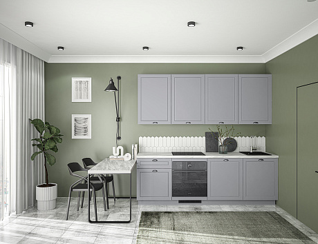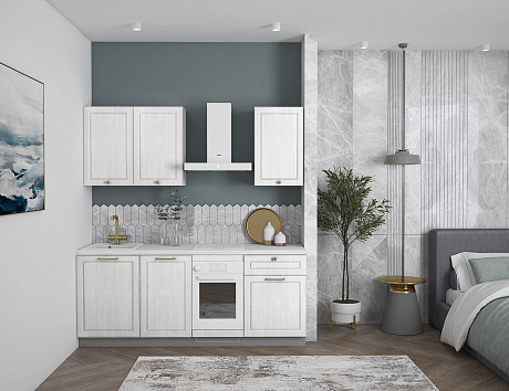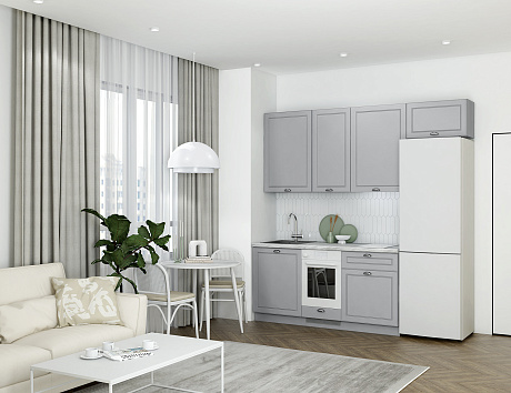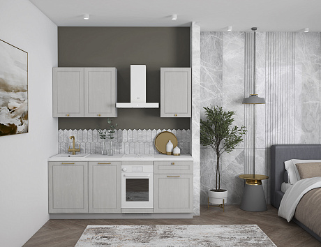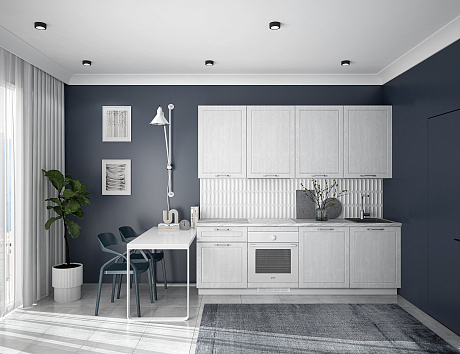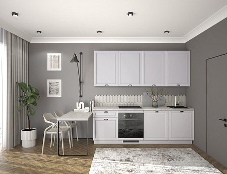 Кухня Лея — компактное готовое решение в классическом стиле, сочетающее элегантный дизайн и абсолютную функциональность. Изящные фасады с рамочной фрезеровкой придают ей нотку утончённости, а до мелочей продуманная конструкция делает её идеальной для небольшого помещения, в котором каждый сантиметр должен быть полезным.