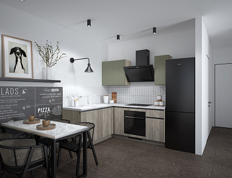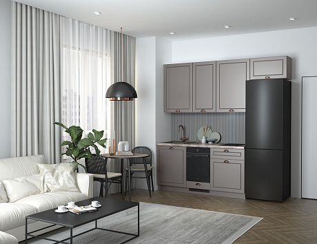 Вдохновлена роскошью, исполнена в минимализме. Кухня-сет Уна — готовое решение для тех, у кого нет времени на индивидуальный проект. Компактная L-образная планировка гарантирует 100% удобство в использовании, а сочетание лаконичных фасадов и строгих акцентов задаёт современный настрой всему интерьеру. Строгий дизайн, продуманные детали и удобные системы хранения делают эту кухню идеальным выбором для тех, кто превыше всего ценит комфорт и эстетику.
