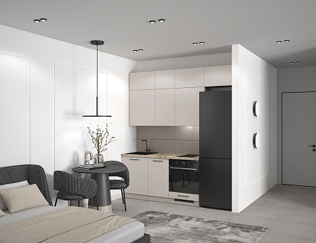 Кухня Уна — это абсолютная гармония эстетики и заложенных смыслов: компактная, стильная, продуманная в каждой детали. Она идеально подойдет тем, кто выбирает минимализм и стремится к порядку даже в самых небольших пространствах.