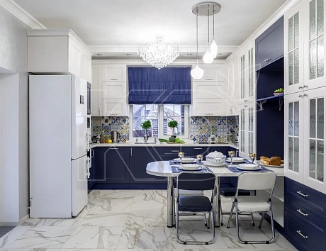 Это направление удачно соединяет вековые традиции и инновационные технологии. Кухни неоклассика подойдут тем, кто хочет пользоваться всеми достоинствами технического прогресса и наслаждаться умеренно роскошным интерьером.
