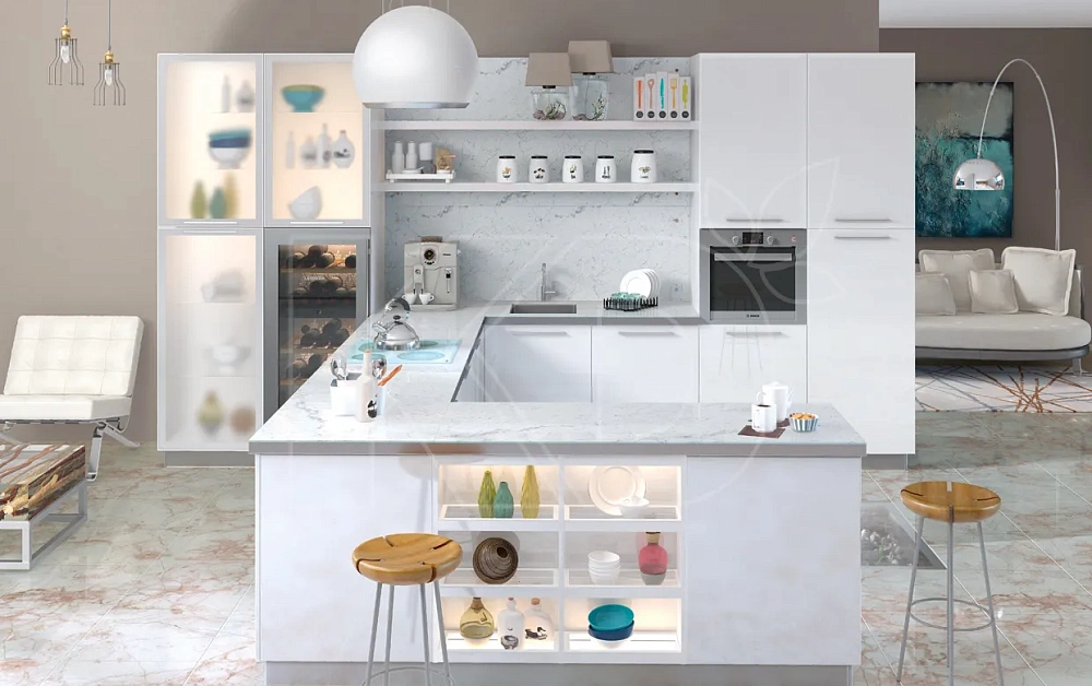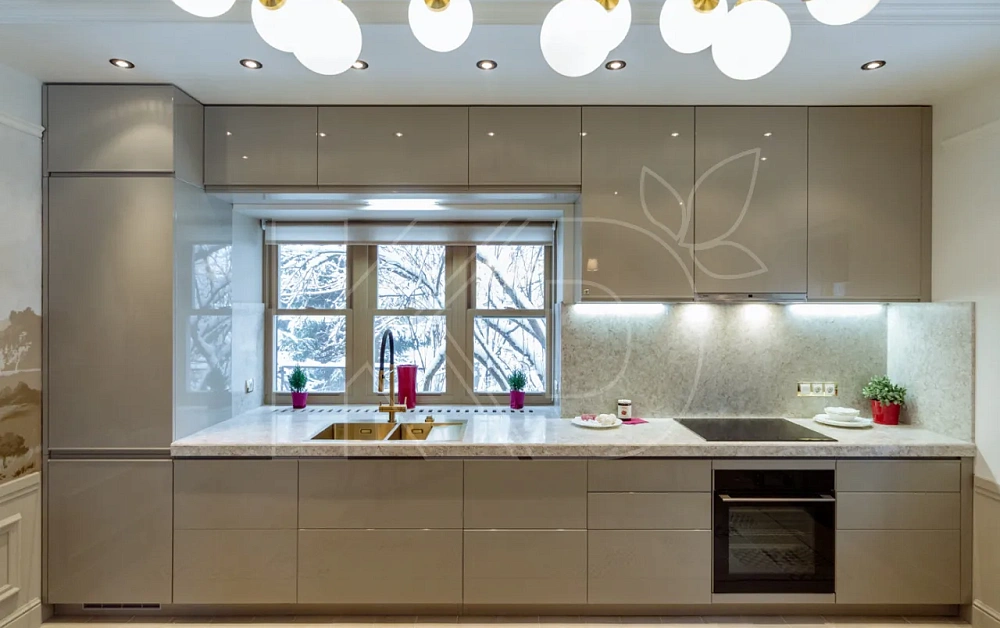 Столешницы из искусственного камня красивы, но все знают, что при их использовании неизбежны мелкие царапины. Тем не менее, заказать кухню по индивидуальным размерам с такой столешницей будет отличным решением.