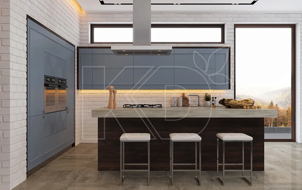 Для просторной квартиры-студии идеальным решением станет островная модель кухни. Гарнитур с такой планировкой подходит для зонирования помещения, потому что остров способен визуально отделить кухню от остального пространства.