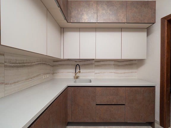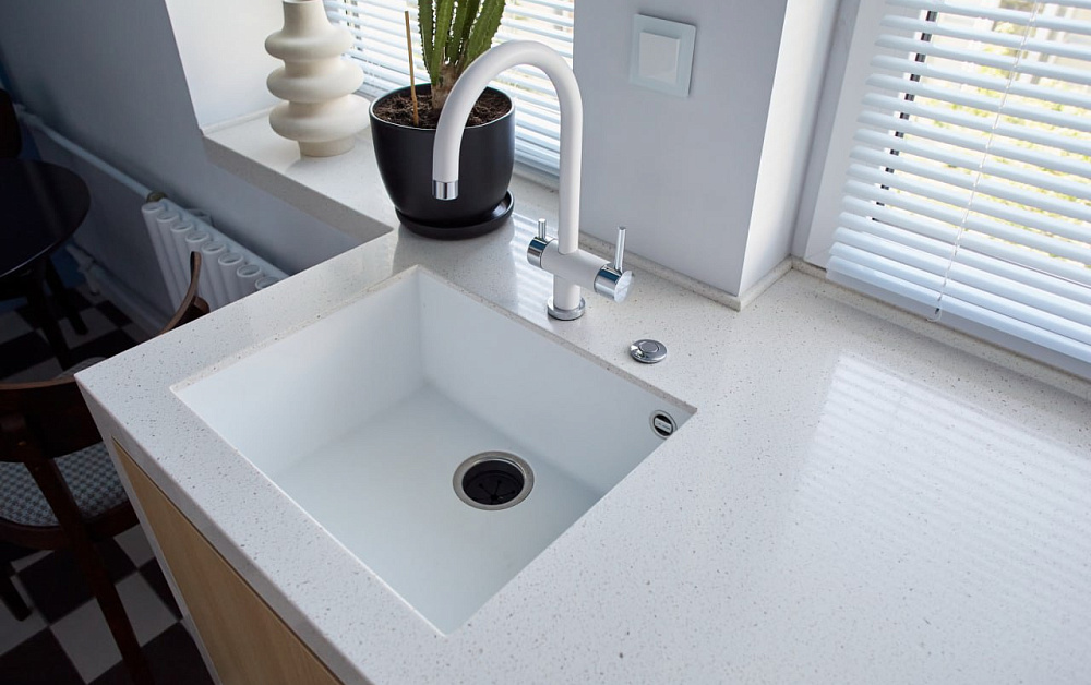 Нужно учитывать, что каждый из этих материалов имеет свою стоимость. Так, средняя цена плитки, укладываемой на пол, составляет от 800 до 2000 рублей за м2, а за квадратный метр рабочей поверхности из искусственного камня придется заплатить от 3500 до 6000 рублей.