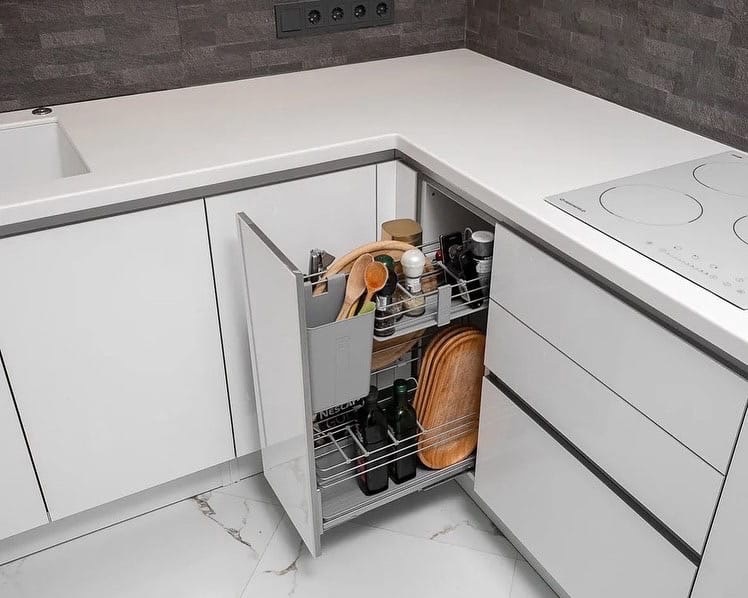 Если же вы выбрали современный стиль кухни, то мебель обойдется дешевле. При ее создании используются более доступные материалы, такие как искусственный камень и МДФ.