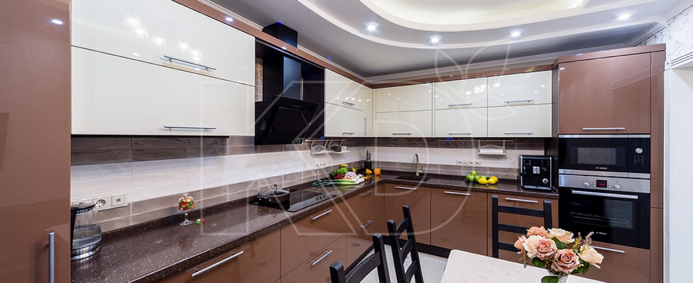 Выбирая дизайн гарнитура, нельзя оставить без внимания и особенности планировки конкретного помещения. У вас небольшая квартира? Обратите внимание на бежевые, песочные оттенки, рассмотрите мебель, в которой скомбинированы коричневые и белые фасады. В окружении светлых поверхностей площадь помещения будет казаться больше, а потолки – выше.
