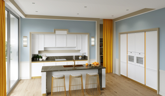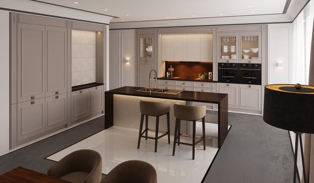 3.     Кухня со стилизацией фасадов под серебро или золото