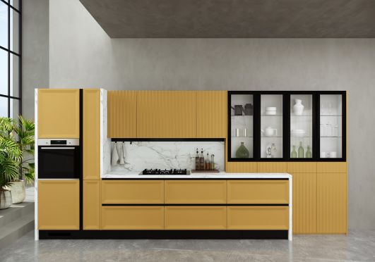 Для квартиры, окна которой выходят на улицу, засаженную высокими деревьями, подойдет желтая кухня. Так как растительность не позволяет солнечным лучам в полной мере освещать комнату, желтый в нем будет весьма кстати.