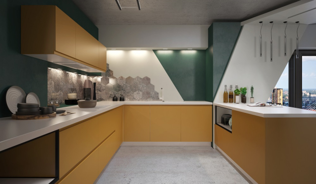 Зеленые оттенки внесут в кухонный гарнитур желтого цвета особую привлекательность и жизнерадостность. Подобную комбинацию можно смело рекомендовать креативным личностям, ищущим смелые решения.