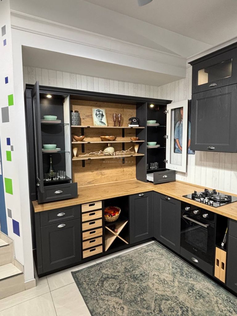 Кухня Стоун Вуд с тонированными стёклами