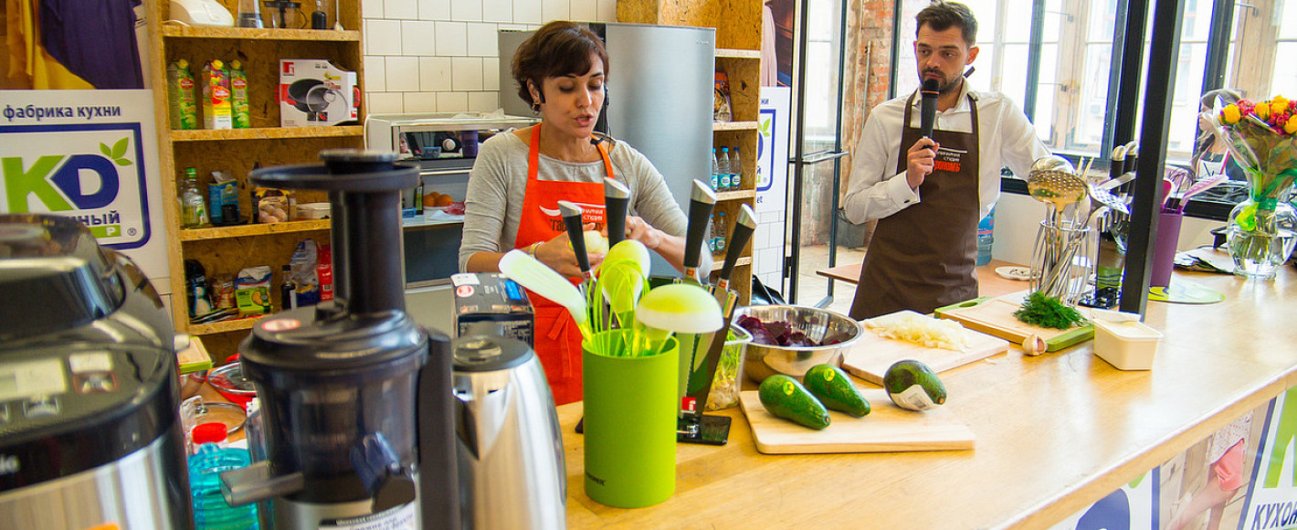 Площадка, организованная нашими партнерами — журналом «Гастрономъ» и компанией “Panasonic”, открыла фестиваль прекрасным солнечным утром. Мастер-класс от шеф-повара ресторана «Доктор Живаго» проходил совместно с компанией «Panasonic», которая предоставила самые новые технические разработки, позволяющие готовить максимально полезную пищу в домашних условиях. Быстро, легко и красиво были приготовлены и предложены гостям свежевыжатый сок из свеклы и сельдерея, ягодное парфе, рататуй и паровые котлетки.