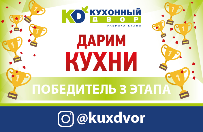 Завершился третий этап акции «Дарим Кухни»! На этой неделе скидка на мебель в размере 100 000 рублей досталась Богатыреву Денису!