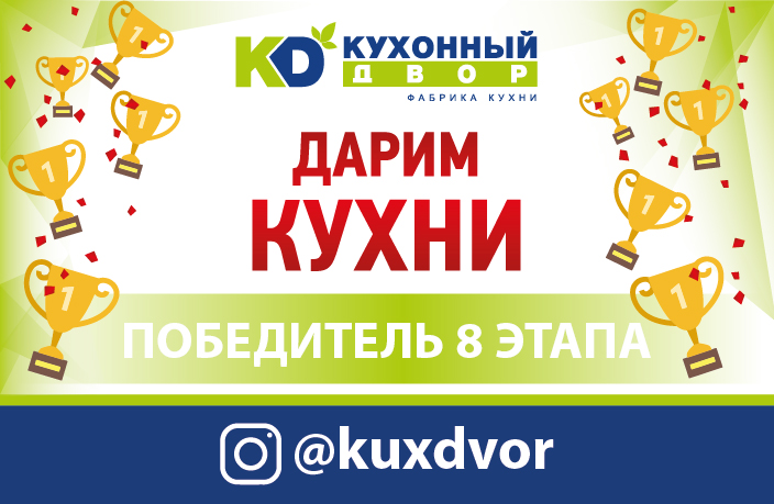 Завершился восьмой этап акции «Дарим Кухни»! На этой неделе скидка на мебель в размере 100 000 рублей досталась  Замятиной Екатерине!