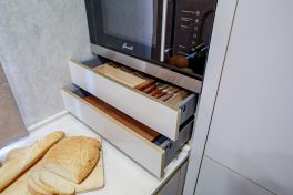 Такая комбинированная кухня отлично подходит не только для отдыха, но и для кулинарного творчества! Она оборудована современной техникой из Европы, а также десятками полезных аксессуаров и мелочей. Богатое оснащение позволяет легко справиться с рецептом из любой кухни мира! «Ханна Стил» от КД стала настоящим сердцем уютного дома семьи Александровых. Дома, в который хочется возвращаться из любых путешествий!